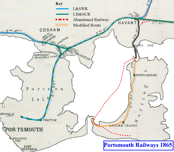 Francis Fuller proposed a bill in 1866 which would lead to the abandonment of the off-shore route and replace it with one that hugged the western coastline of Hayling Island.